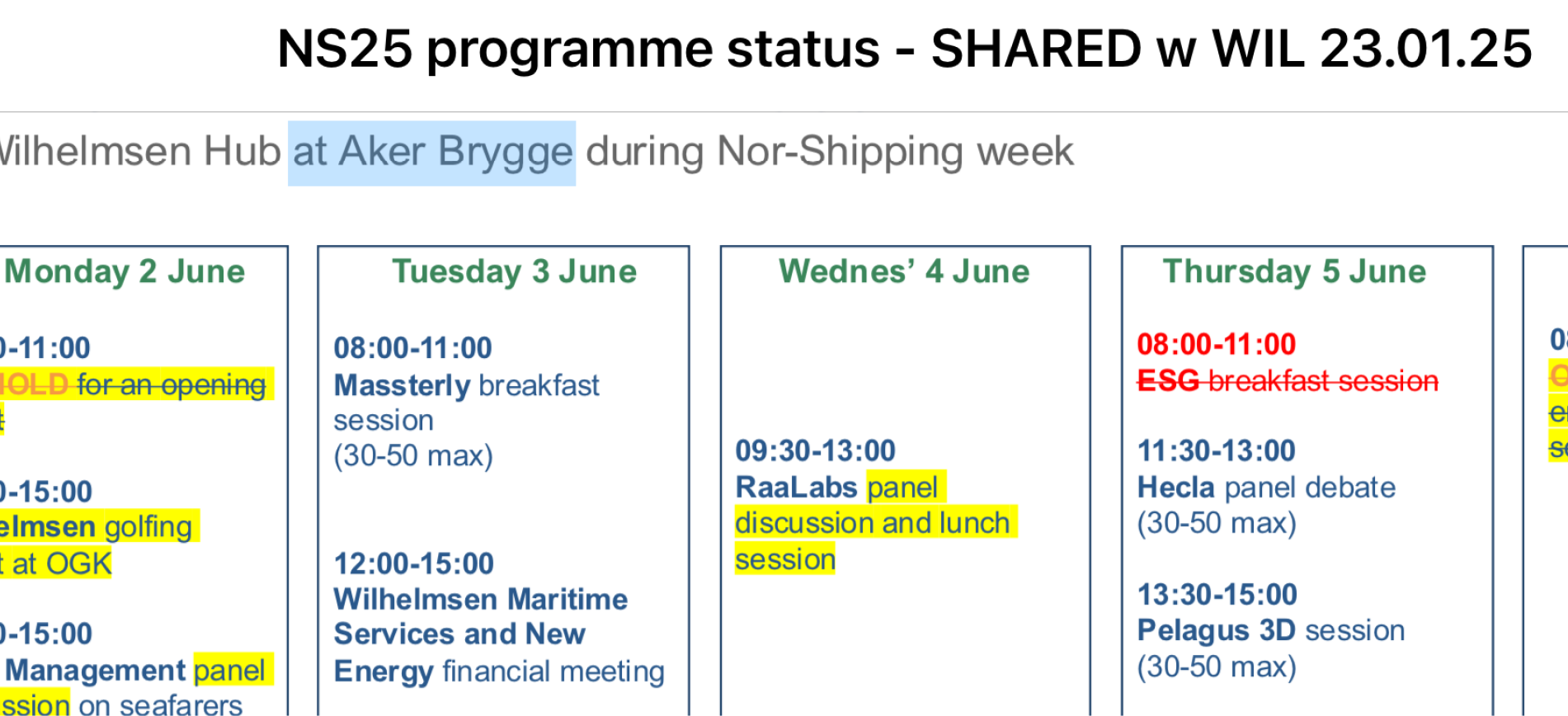 Before 2025, Wilhelmsen’s Nor-Shipping program lived in two constantly changing PDFs: one for Aker Brygge and one for Lillestrøm. It was hard for visitors to compare events between venues on-the-go. It didn’t reflect the premium experience at Wilhelmsen.